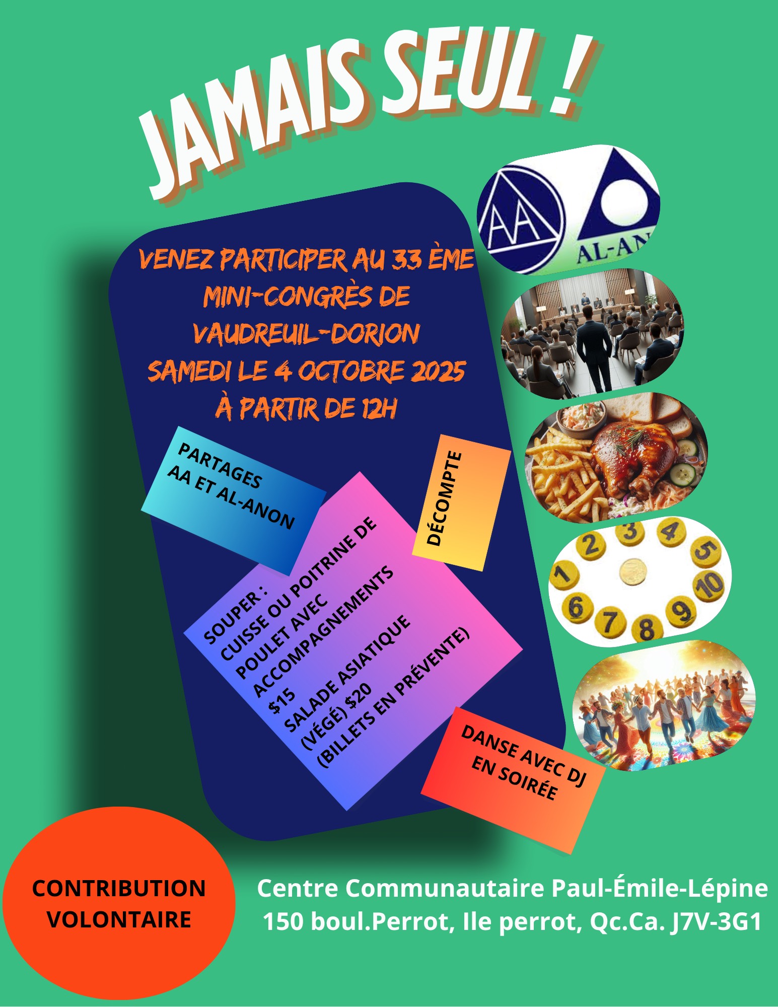 Jamais seul ! Partages AA et Al-Anon Affiche